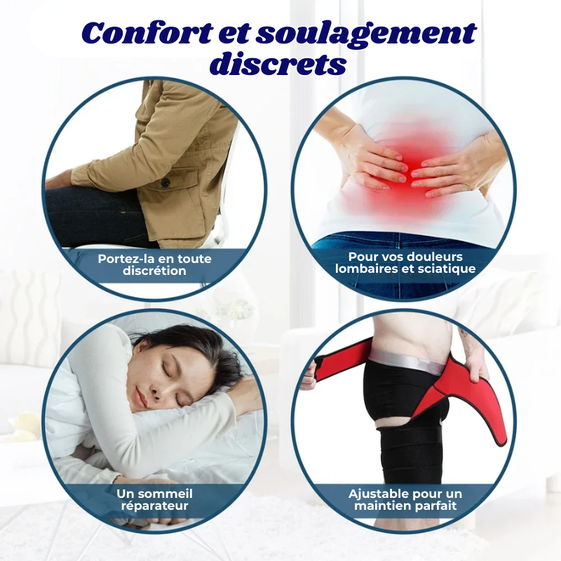 Adaptée à toutes les situations, elle vous soulage aussi bien pendant vos activités physiques que lors de vos moments de repos. De jour comme de nuit, elle accompagne vos mouvements et réduit la pression sur l’articulation et le nerf sciatique pour un bien-être continu.