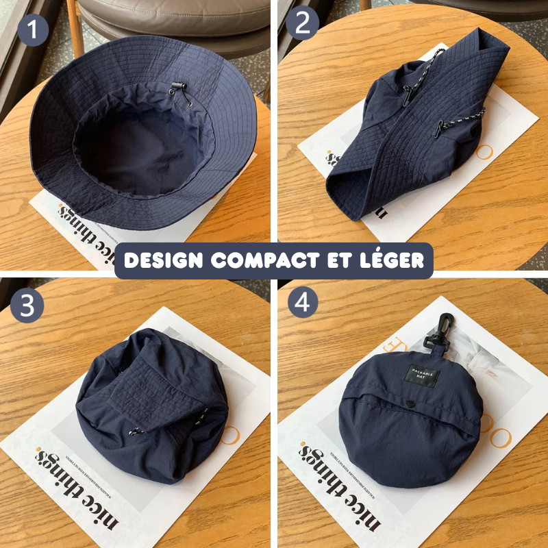 Le gros plus ? Ce chapeau se replie sur lui-même pour former une petite pochette compacte munie d’un crochet. Accrochez-le facilement à votre sac à dos, ceinture, passant de jean ou de short. Léger et peu encombrant, il est parfait pour les baroudeurs, campeurs et voyageurs qui cherchent des accessoires malins et fonctionnels.