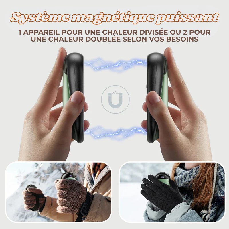 Chauffe-Mains Magnétiques 2 en 1 Portables & Rechargeables - 3 Températures