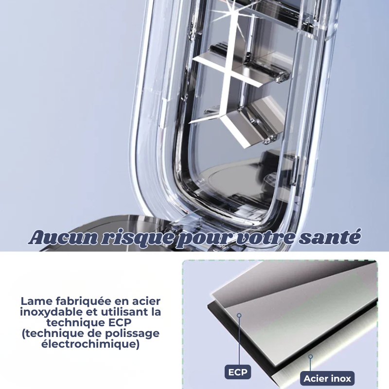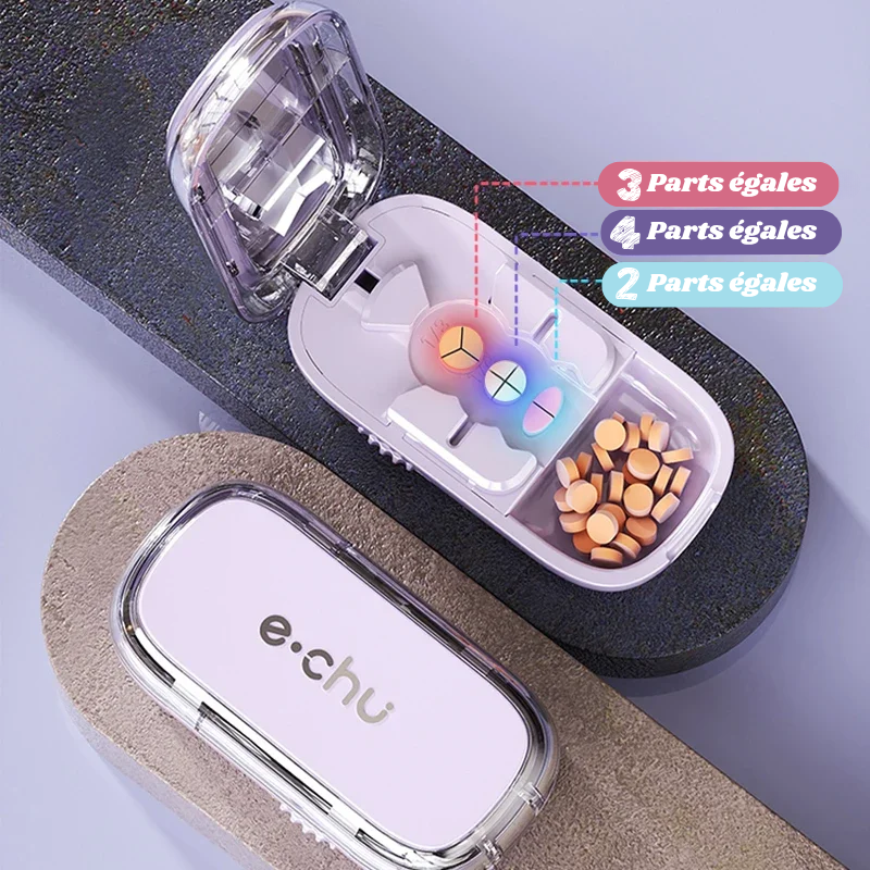 Grâce à sa lame en acier inoxydable ECP (technique de polissage électrochimique), ce coupe-médicament vous garantit une découpe nette et précise, sans risque pour votre santé. Il permet de couper vos comprimés en 2, 3 ou 4 parts égales, idéal pour les personnes ayant des difficultés à avaler des comprimés trop gros, ou pour adapter les doses aux enfants ou des animaux. Le système de pression est simple, rapide et totalement sécurisé : placez le comprimé à l'intérieur, réglez l'ajustement, fermez le pilulier, appuyez fermement sur le couvercle, et votre médicament est parfaitement sectionné.