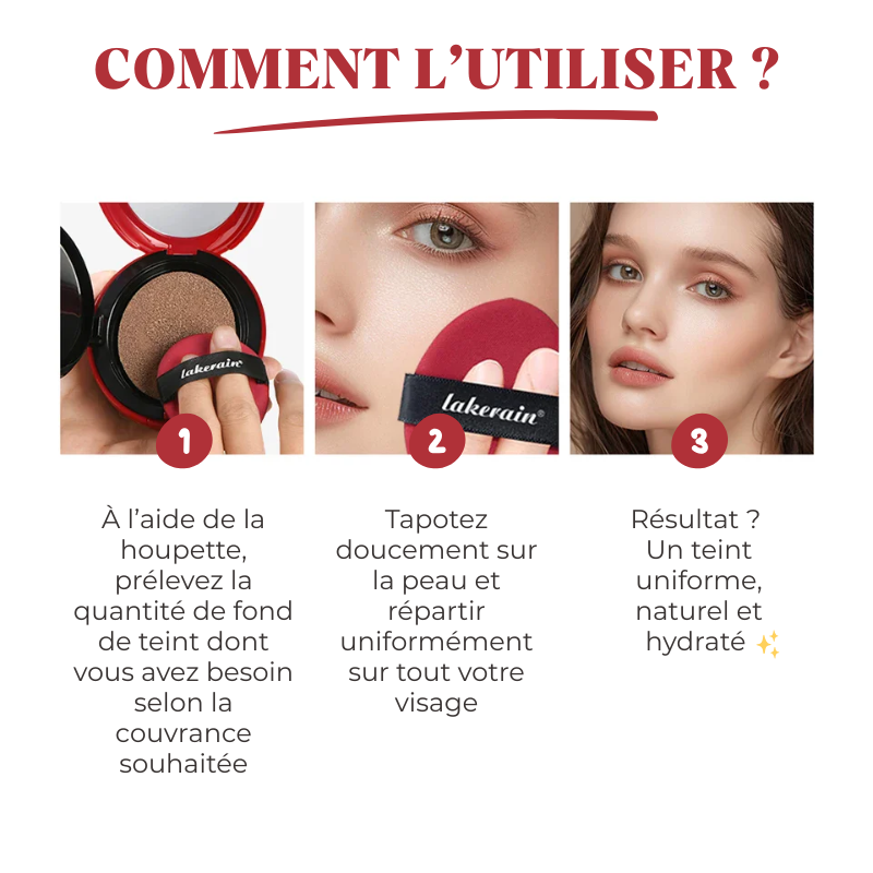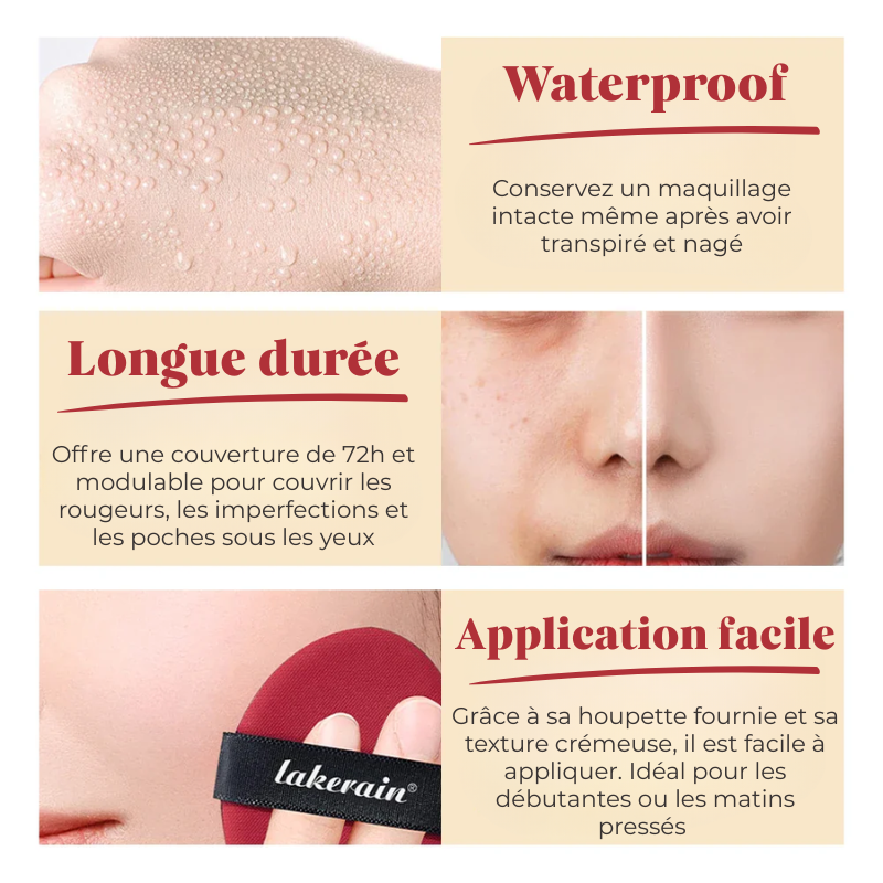 - 1x Fond de Teint Cushion Couvrance Optimale & Longue Durée de la Teinte de votre choix