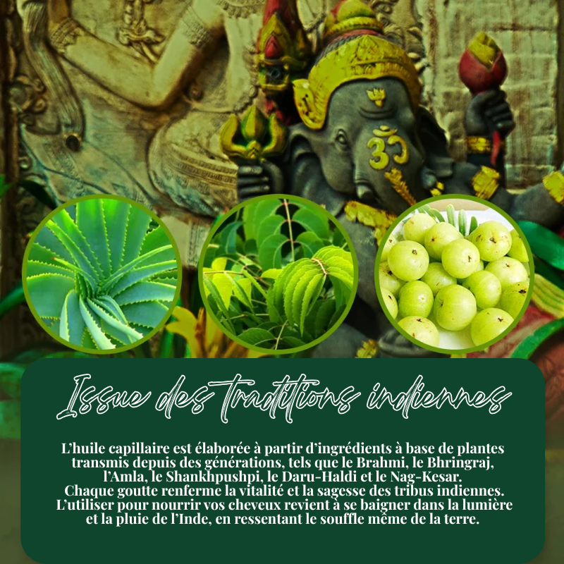 Depuis des siècles, les femmes indiennes sont reconnues dans le monde entier pour leurs cheveux longs, épais et éclatants de santé. Leur secret ? Des huiles naturelles ayurvédiques, utilisées dans des rituels de beauté transmis de génération en génération.
