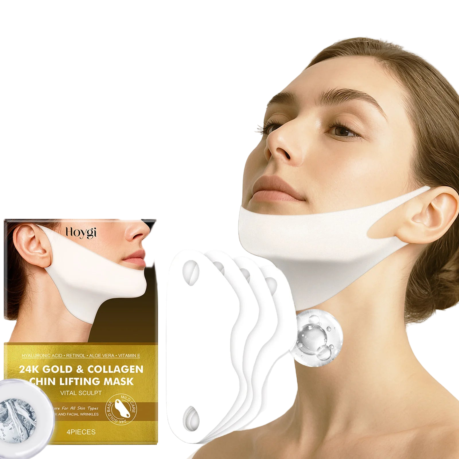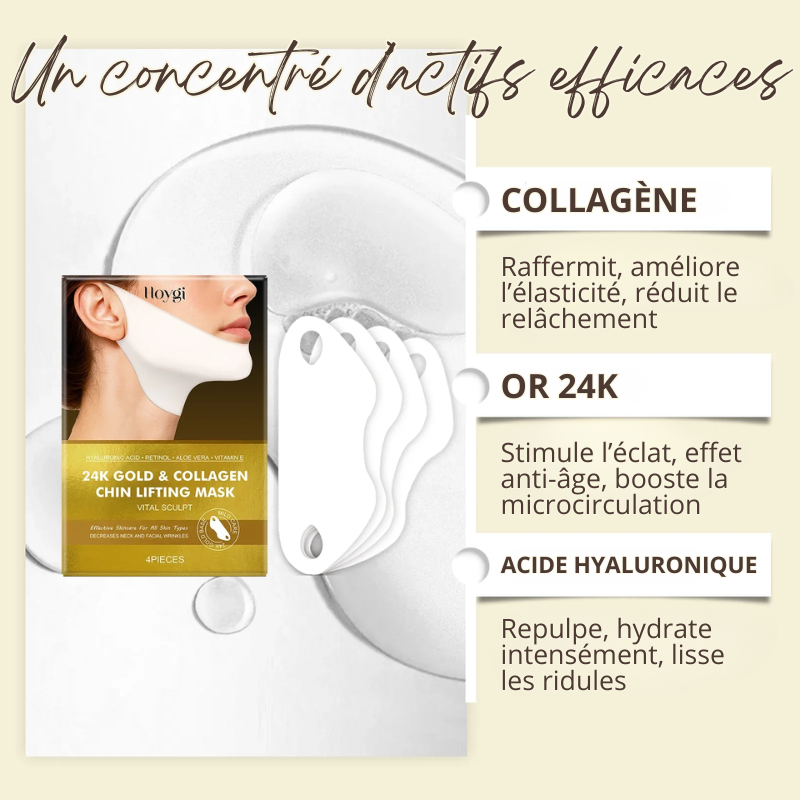 - 4 x Masque Lifting Menton & Cou au Collagène OR 24K OFFERTS
