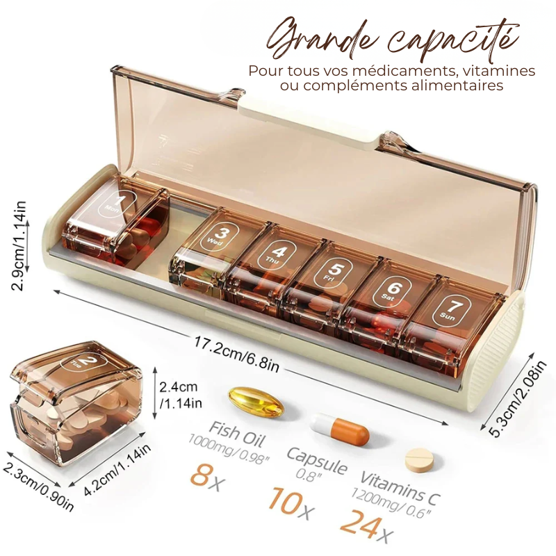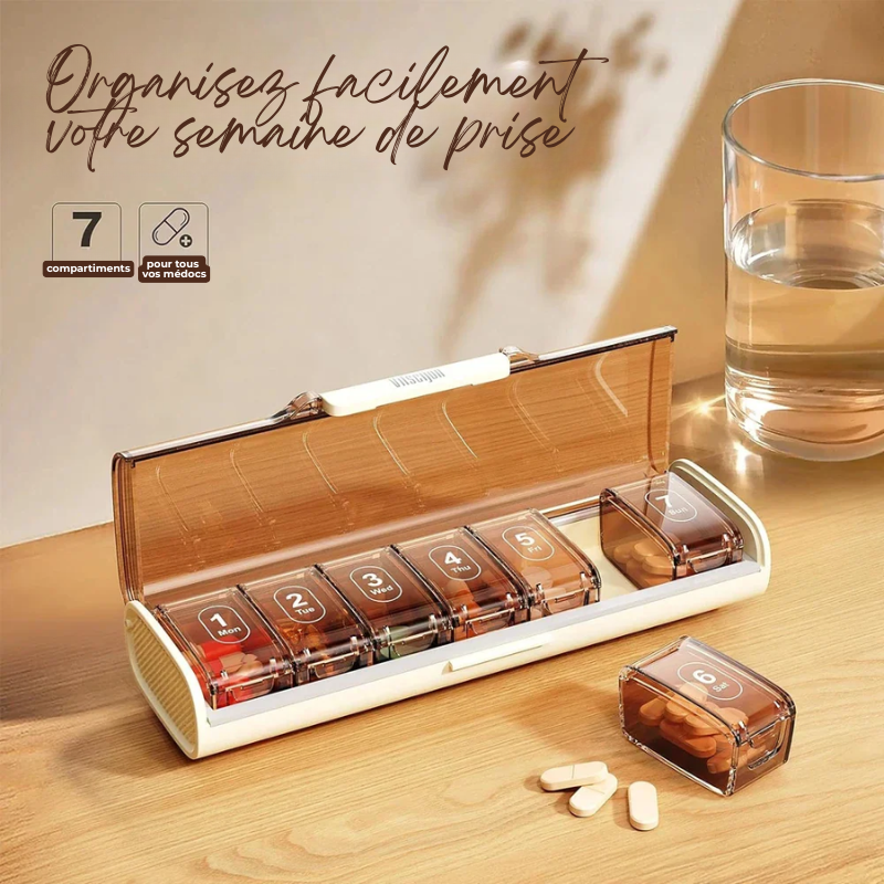 Ne ratez plus jamais la prise de vos médicaments, vitamines ou compléments alimentaires grâce à notre Pilulier de Poche Semainier 7J !
