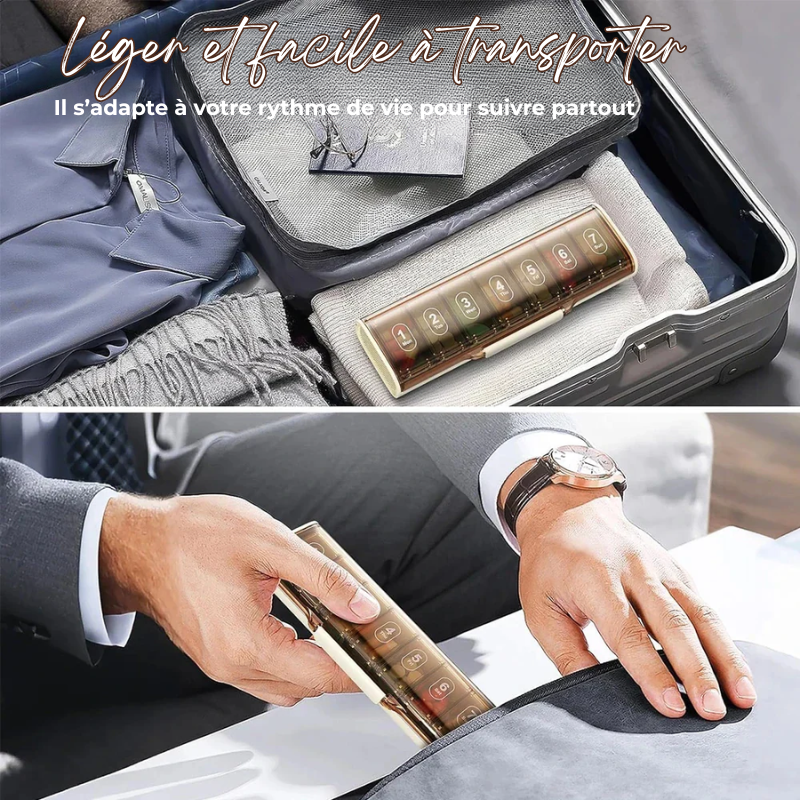 Grâce à son format de poche, ce pilulier s’adapte à votre rythme de vie :