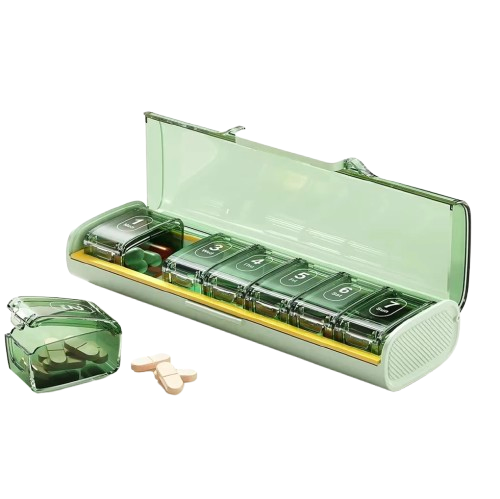 Fabriqué à partir de plastique sans BPA, notre pilulier garantit une utilisation 100 % sûre pour votre santé. Solide, durable et résistant aux chocs, il a été conçu pour durer dans le temps sans se déformer ni se fissurer. C’est un accessoire de confiance, idéal aussi bien pour les adultes, les seniors que les voyageurs souhaitant une solution simple pour organiser leur traitement.